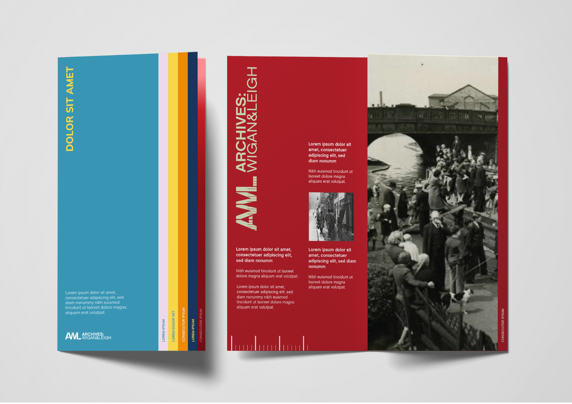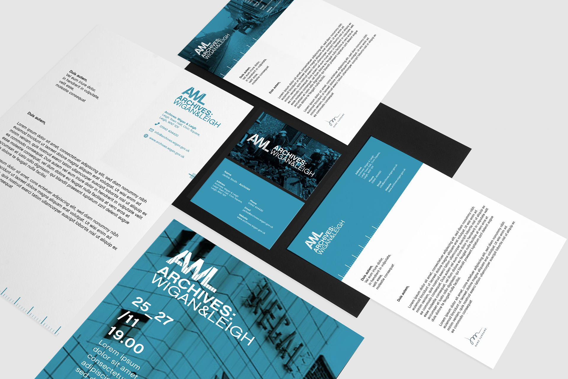 Graphic design and branding for Archives: Wigan & Leigh. The Wigan Archives Service has well over 500,000 documents, photographs, maps and historic books in their collections.